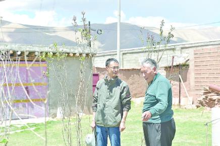 尽管索南罗卜栽种的6株杨树苗已经长出小绿叶,但他的朋友认为,要想把树种好,还需借鉴低海拔地区的成功经验。“原有草皮要保护好,树坑最少要挖60厘米,长了根系的苗木,枝叶越少越容易存活,水要在太阳底下好好晒晒,种完树要及时覆土……”相聚的几天时间里,索南罗卜和朋友商量出了一个在自家院子里能成功栽种树苗的步骤。