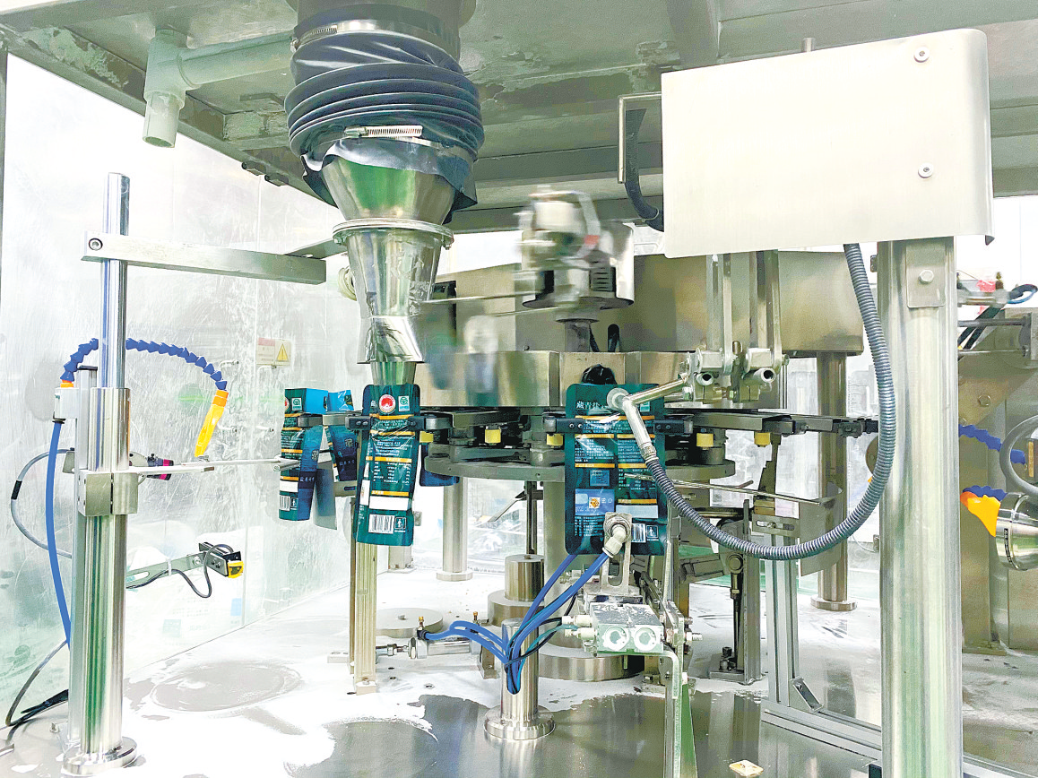 食盐机械灌装中。白杨 摄