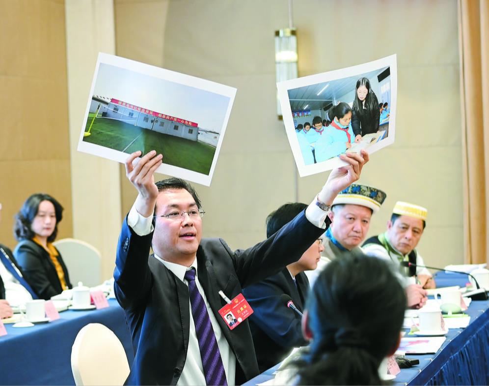 3月6日上午,出席十四届全国人大二次会议的青海代表团举行开放团组会议,陈刚、吴晓军等代表回答中外媒体提问。